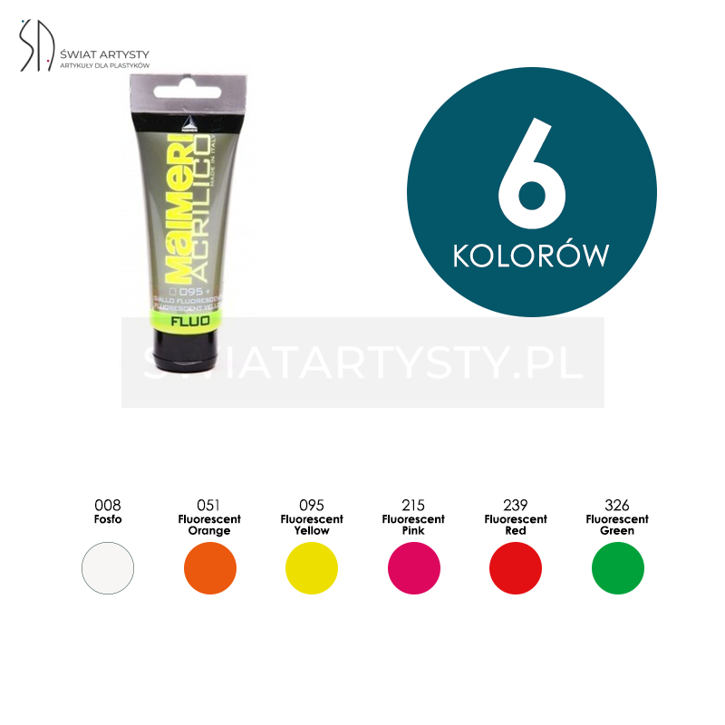 Farby akrylowe Maimeri Acrillico Fluo UV to gama 6 intensywnych kolorów o wysokim poziomie krycia.