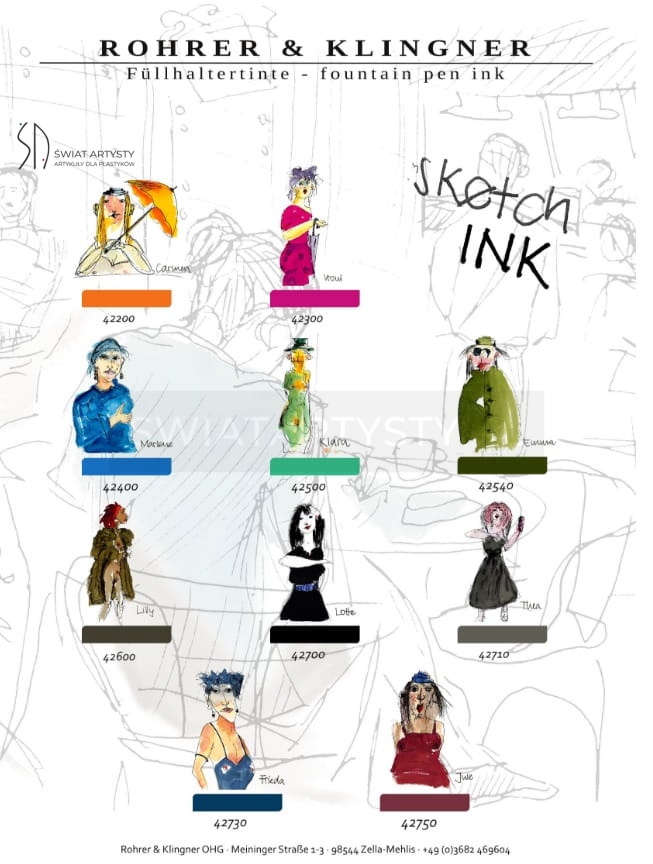 Rohrer & Klingner to renomowana niemiecka firma, która od 1892 roku produkuje wysokiej jakości atramenty i tusze. Ich seria Sketch Ink została stworzona z myślą o artystach i miłośnikach kaligrafii, oferując szeroki wybór intensywnych kolorów oraz doskonałe właściwości użytkowe.