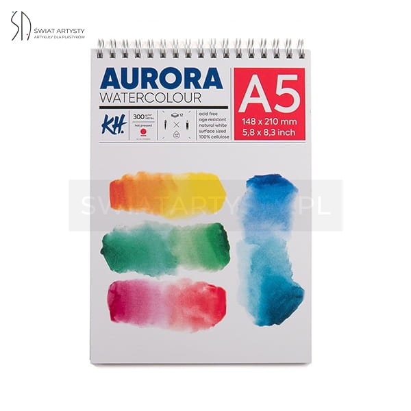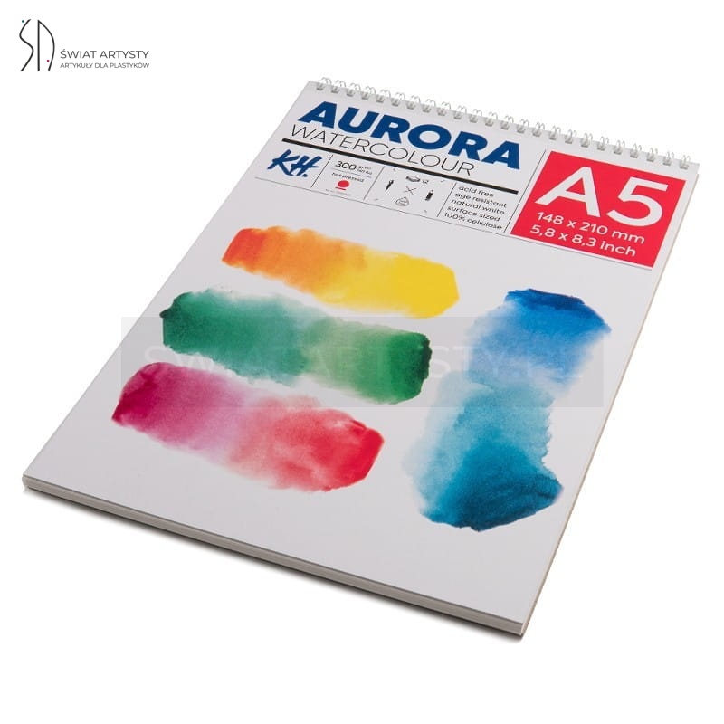 Blok do akwareli AURORA Hot Pressed (gładki) 300g, 12 ark. A5 na spirali
