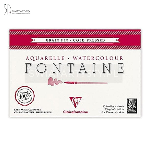 Blok do akwareli FONTAINE Clairefontaine - Grain Fin - 300g, 25ark, 10x15cm