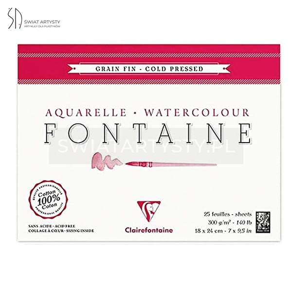 Blok do akwareli FONTAINE Clairefontaine - Grain Fin - 300g, 25ark, 24x30cm