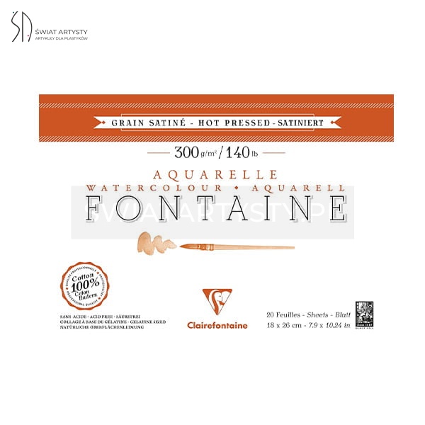 Blok do akwareli FONTAINE Clairefontaine - Satine - 300g, 20ark, 18x26cm