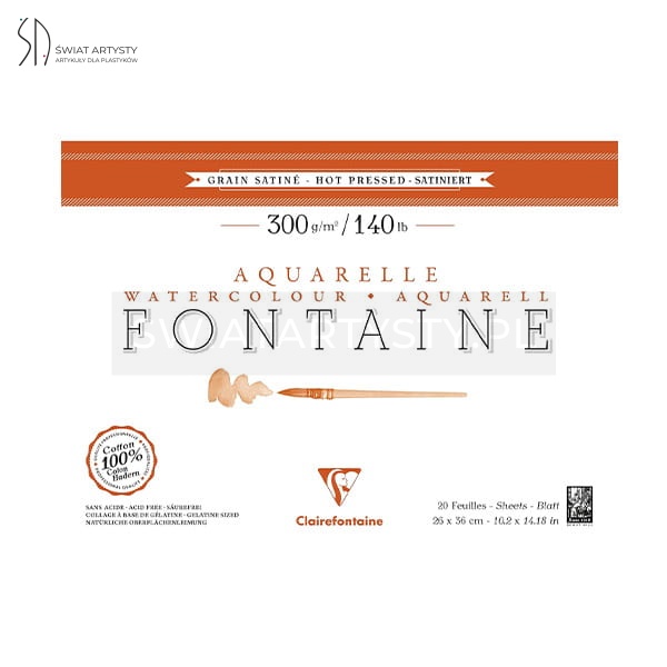 Blok do akwareli FONTAINE Clairefontaine - Satine - 300g, 20ark, 26x36cm
