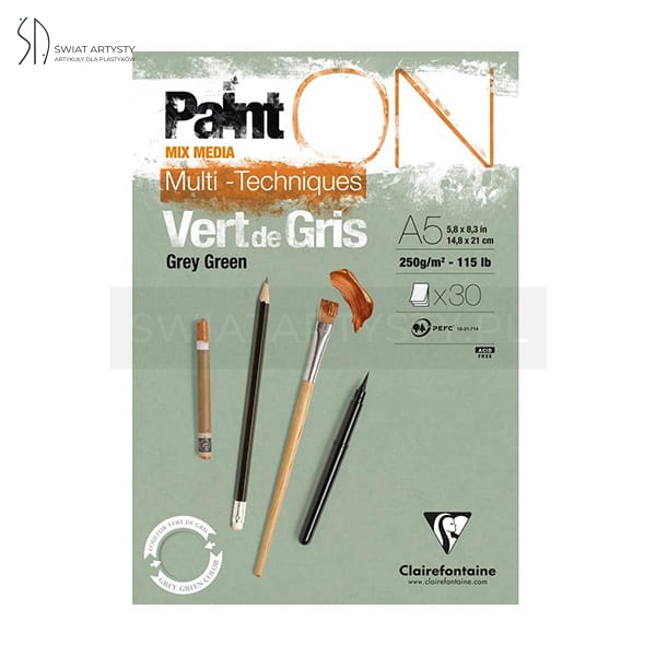 Specyfikacja Clairefontaine Paint ON Mix Media Multi-Techniques Vert de Gris: