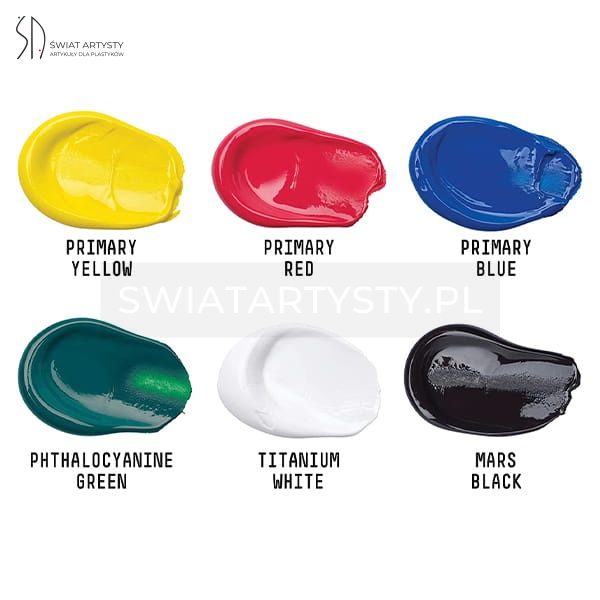 - użyte spoiwa (substancje wiążące) są identyczne jak w artystycznych farbach Liquitex z serii Extra-Fine - farby posiadają gęstą, kleistą konsystencję
