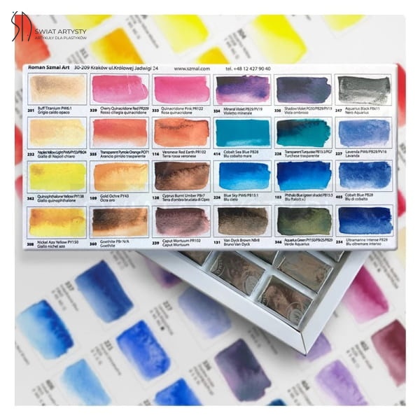 - wszystkich, którzy chcą mieć kompletny, profesjonalny zestaw 24 kolorów w jednej palecie – bez potrzeby ciągłego mieszania od podstaw.
