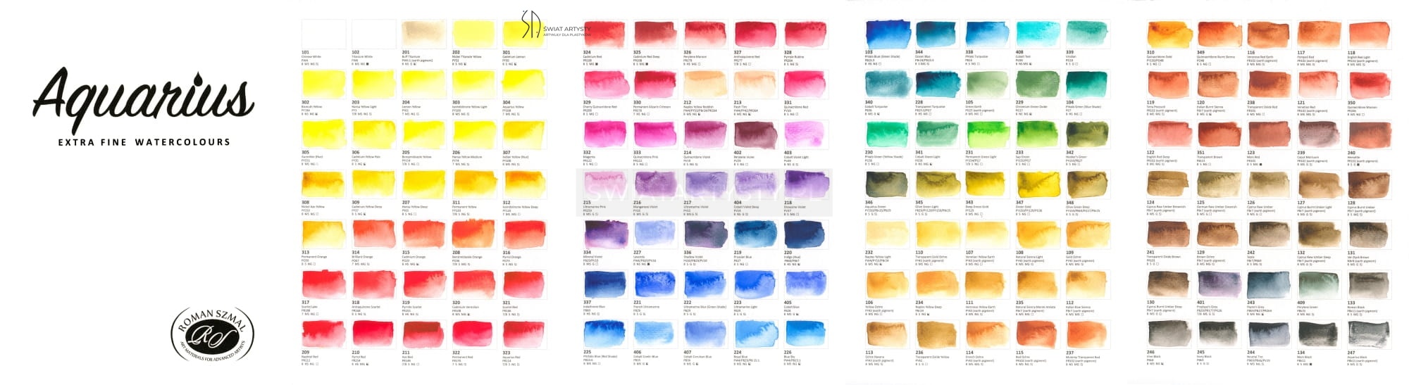 Zawartość kolorystyczna farb akwarelowych Aquarius Travel Set: