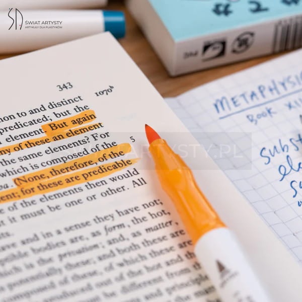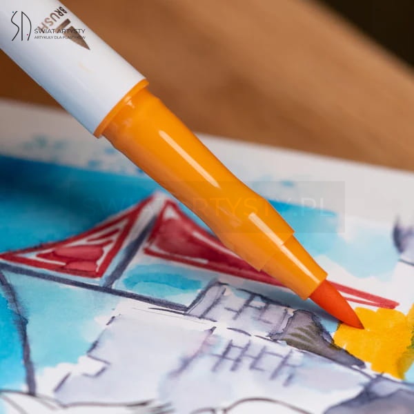 Pędzelkowa końcówka daje szerokie spectrum możliwości – jest wytrzymała i jednocześnie elastyczna, pozwala uzyskać różnej grubości linie. Cienka końcówka świetnie sprawdza się do precyzyjnych wykończeń, konturów i drobnych detali.