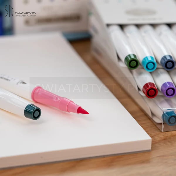 Pędzelkowa końcówka daje szerokie spectrum możliwości – jest wytrzymała i jednocześnie elastyczna, pozwala uzyskać różnej grubości linie. Cienka końcówka świetnie sprawdza się do precyzyjnych wykończeń, konturów i drobnych detali.