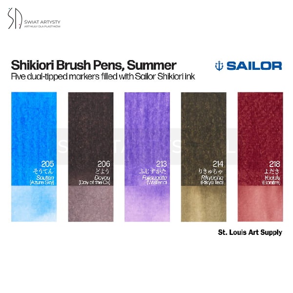 Flamastry kaligraficzne Sailor Shikiori - brush i cienkopis - lato
