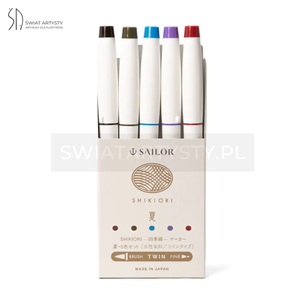 Zestaw pięciu flamastrów pędzelkowych Sailor Shikiori inspirowany kolorami danej pory roku.