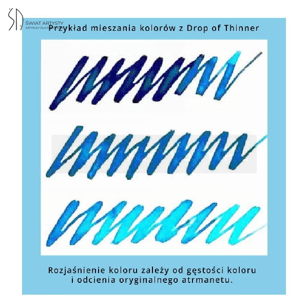 Wystarczy wymieszać niewielką ilość Drop of Thinner z atramentem, aby uzyskać jaśniejszy kolor.