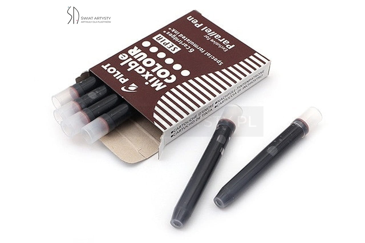 Naboje z tuszem o specjalnej formule, przeznaczone do pióra kreślarskiego Pilot Parallel.