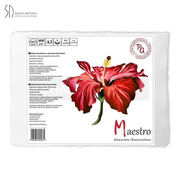 Papier bawełniany do akwareli Papier Artystyczny Maestro Cold Pressed Hibiskus - 400g, A3, 5ark.