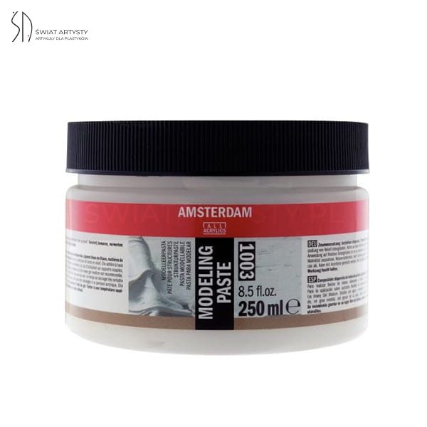 Pasta do modelowania podłoża malarskiego Modeling Paste 1003 z serii Amsterdam przeznaczona jest do przygotowywanie podłoża reliefowego (fakturowanego) pod farby olejne, akrylowe, tempery, gwasze, kredowe.