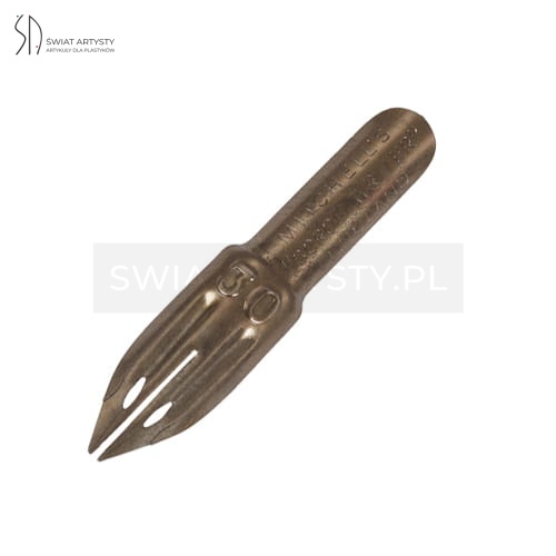 Stalówka do kaligrafii William Mitchell Scroll 30, rozchylona - stalówka zostawia podwójną, równoległą linię, nadaje się do pisania liter wersalikowych, a także do ornamentów.