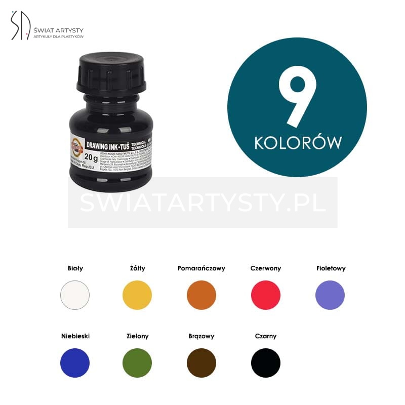 Tusz kreślarski rysunkowy Koh-I-Noor 20g - różne kolory