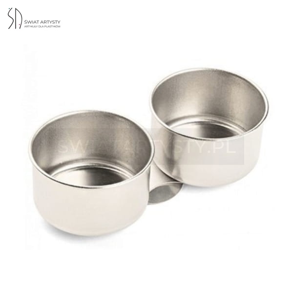 Podwójny, metalowy zbiorniczek przeznaczony do przechowywania mediów malarskich, takich jak rozpuszczalniki, oleje czy woda. Wyposażony w klips umożliwiający przymocowanie do palety malarskiej.
