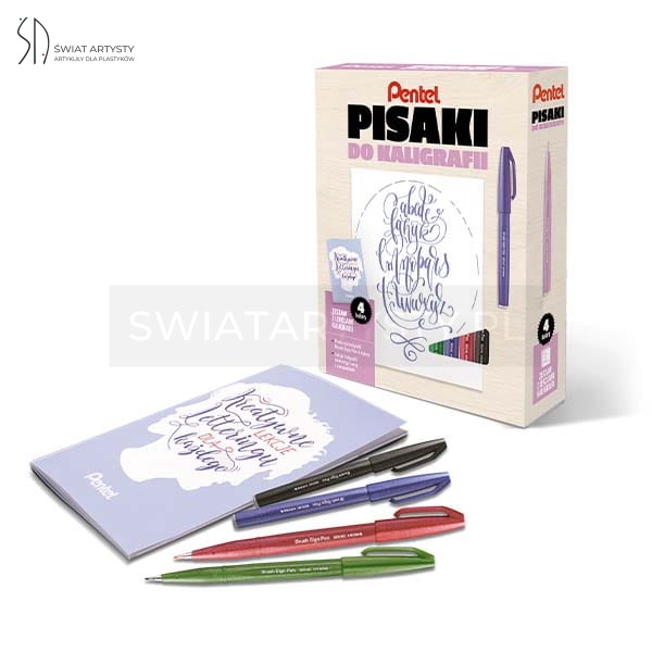 Zestaw do kaligafii i liternictwa Pentel - 4 kol. brushy + zeszyt ćwiczeń