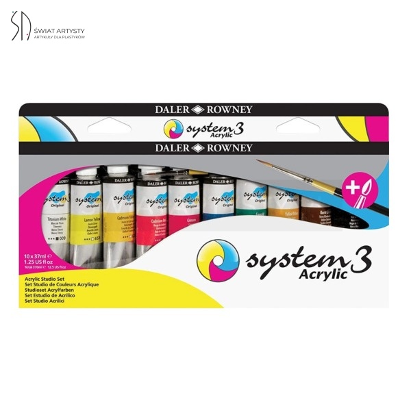 Zestaw farb akrylowych Daler Rowney System 3 - 10x38ml + pędzelek