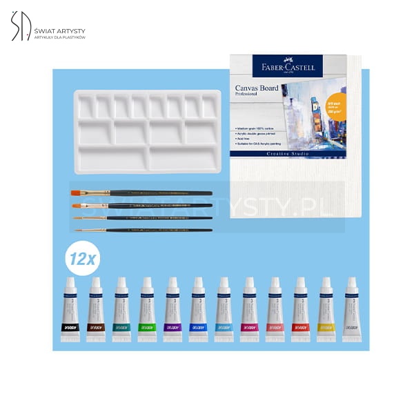 Zestaw farb akrylowych w tubkach FABER-CASTELL Creative Studio + dodatki