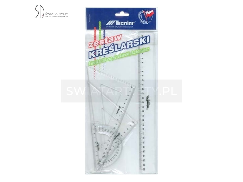 Zestaw kreślarski Leniar - linijka, dwie ekierki, kątomierz