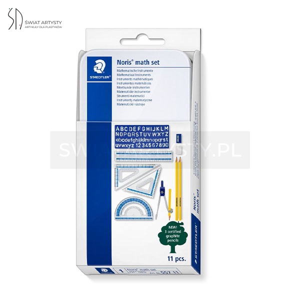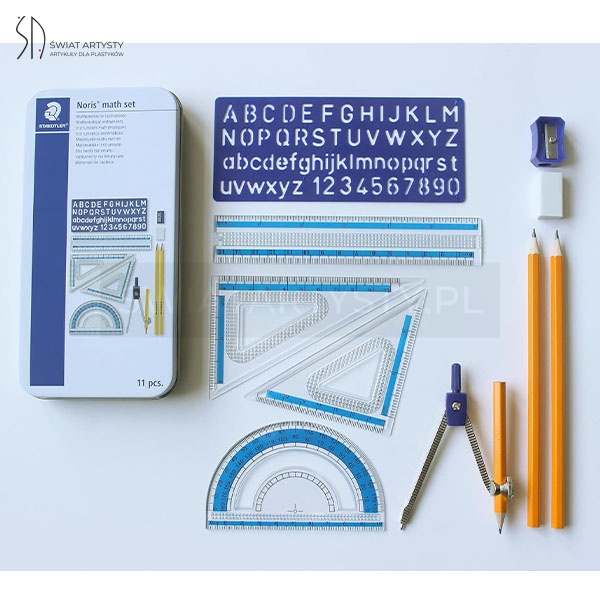 Staedtler Math Set 11-elementowy to kompletny zestaw przyborów geometrycznych zaprojektowany z myślą o lekcjach matematyki i geometrii w szkole. Umieszczony w trwałym i eleganckim metalowym etui, które nie tylko zabezpiecza zawartość przed uszkodzeniem, ale również prezentuje się stylowo i profesjonalnie.