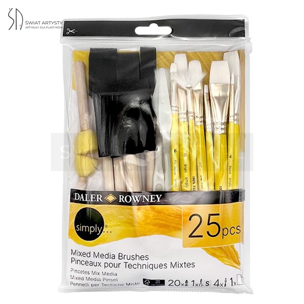 Mixed Media Brushes Simply Daler & Rowney – zestaw 25 pędzli i akcesoriów